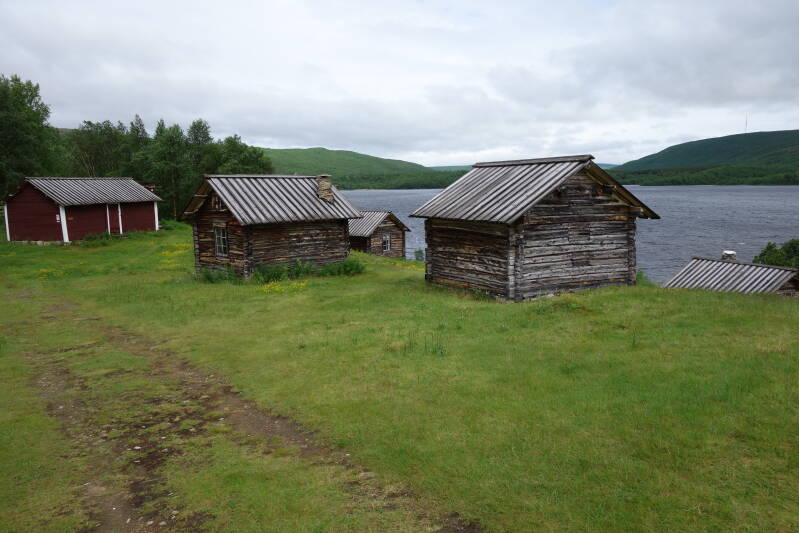 Na een stralende dag regende het in Nuorgam. Geen probleem, want Weather Pro voorspelde droog weer zo'n honderdzeventig kilometer zuidelijker in Inari. Dit dorp werd aldus het doel van onze uitstap van de dag. Op de heenweg naar Nuorgam vanuit Luosto hadden we er al het Sami openluchtmuseum bezocht en nu wilden we het grootste meer van Finland aandoen en het Sami parlementsgebouw. Dankzij de rasechte Sami vrouw Marjetto Holmberg van onze Nuorgam Lodge kon onze dag niet meer stuk. Haar voorouders leefden in Utsjoki dat we onderweg zouden passeren. Geen enkele busman die er kwam. Wel gehaaste lieden richting Noordkaap die het na een kwartiertje gezien hadden of juist niet. Een klein oud gedrongen Sami-vrouwtje leidde ons langs de houten huisjes, hutten uitgestrooid langs de oever van een riviertje, met iets verderop een kerkje. Sommige hutten behoorden tot dat kerkje en andere waren familie-eigendom, zoals ook de hut van de reizende schoolmeester Nils Holmberg, de over-overgrootvader van Marjetto. Zijn schrijftafeltje en leskamertje zijn de stille getuigen van het verleden. Zonder rooksauna en caféhut was het dorp uiteraard niet compleet. De sauna lag er koud bij maar des te uitnodigender lonkten de koffie en de vers gebakken wafels met zelfgemaakte jam vanuit de caféhut. We lieten het ons smaken en trakteerden het Sami-vrouwtje op deze lekkernij die ter plekke werd gebakken. Hoe eenvoudig kan het leven zijn, mijlenver van de bewoonde wereld, een kleine vijfhonderd kilometer boven de poolcirkel, in een café hut.